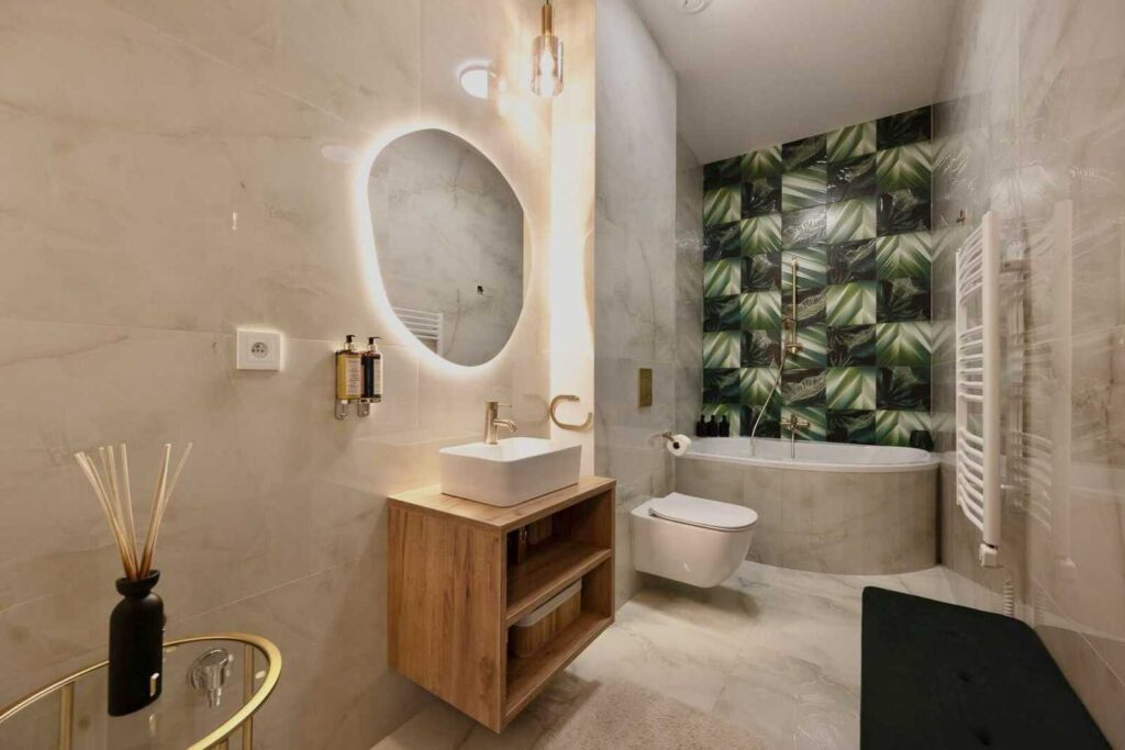 - LED podsvícení zrcadla a bodové stropní osvětlení
